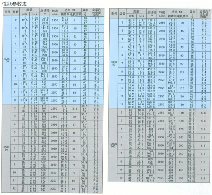 本系列水泵揚程在100至1100米時,流量為10至100米/時,被輸送液體的最高溫度為110。適合于鍋爐給水、工廠及城市給水之用。